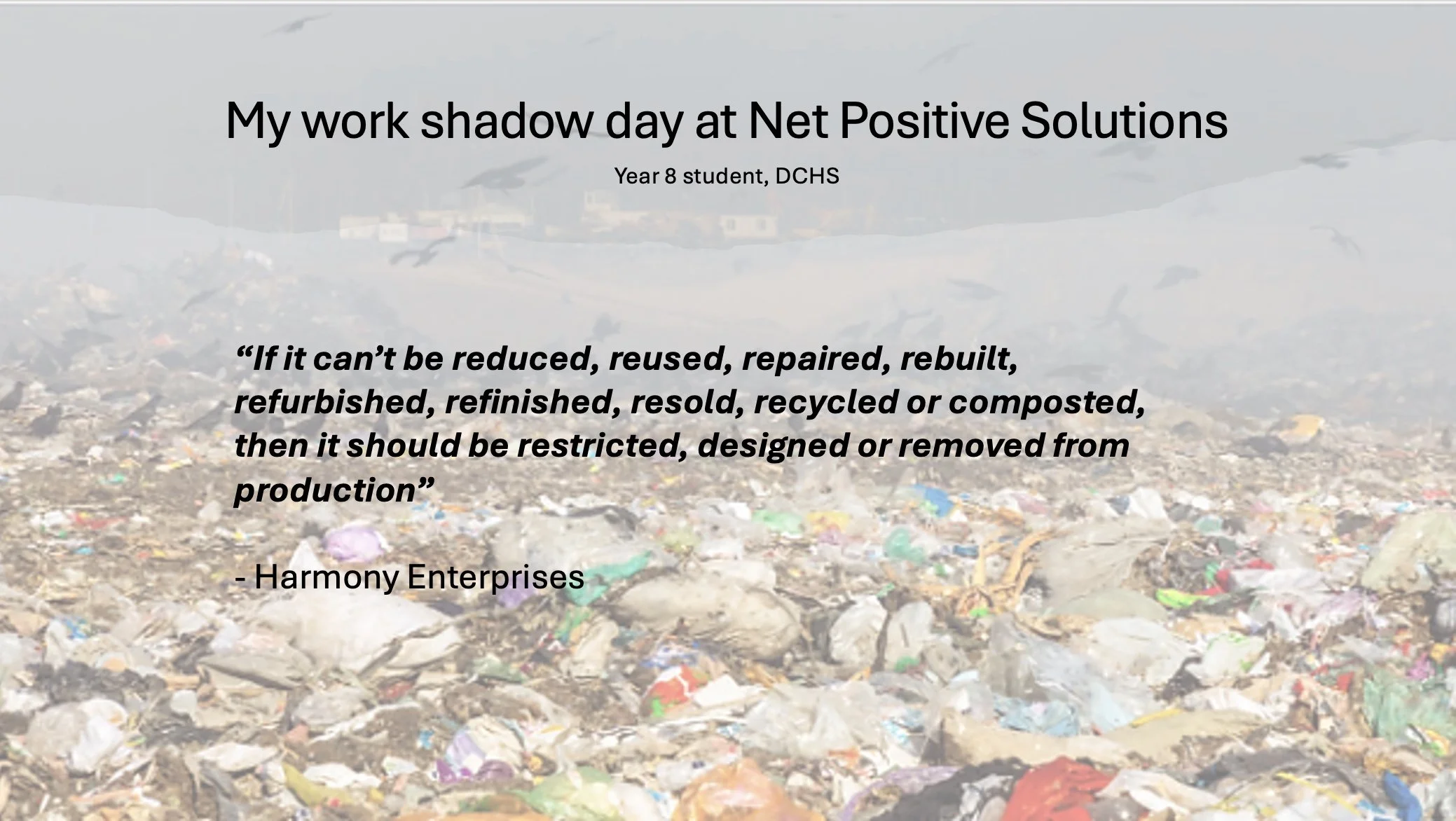 After interviewing some Net Positive Solutions colleagues and co-workers about their jobs and how they include circular economy into it I realised that it’s all very well to have a job that you love and finding a way to make it sustainable, in fact every one who can do that should, but not every one has jobs and not every one is old enough to have a job.